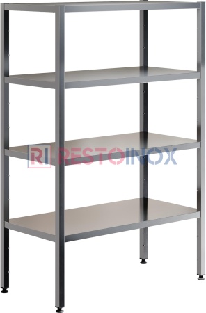 Стеллаж производственный кухонный RESTOINOX СТП-15/4 разработан для применения в моечных отделах, складских зданиях или помещениях, а также в холодильных или морозильных камерах для временного или постоянного размещения посуды, различного используемого при приготовлении пищи инвентаря или пищевых продуктов.