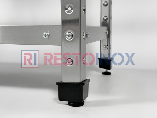 Опоры каркаса имеют возможность производить регулировку горизонтальности стеллажа.