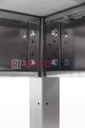Полка из нержавеющей стали Aisi 430, находится на высоте 300 мм от пола, усилена ребром жесткости из нержавеющей стали Aisi 430.