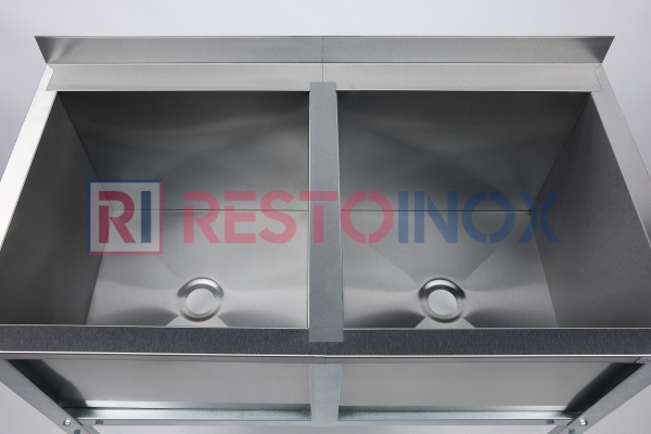 Ванна моечная двухсекционная RESTOINOX ВМС-2/12/7-Б-ЭК разработана для применения в моечных отделениях предприятий общепита и торговли различного формата, пищевых производств и пищеблоков для мытья посуды, кухонного инвентаря, продуктов питания и рук персонала.