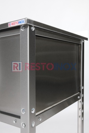 Ножки из уголка 40х40 мм из нержавеющей стали Aisi 430 с пуклевкой, что придает дополнительную жесткость конструкции.