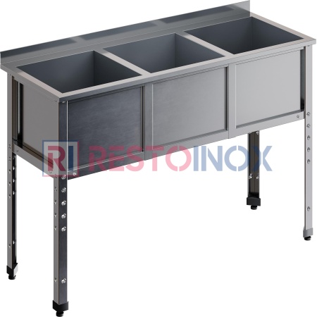 Ванна моечная трехсекционная RESTOINOX ВМС-3/7-Б-ЭЦ разработана для применения в моечных отделениях предприятий общепита и торговли различного формата, пищевых производств и пищеблоков для мытья посуды, кухонного инвентаря, продуктов питания и рук персонала.