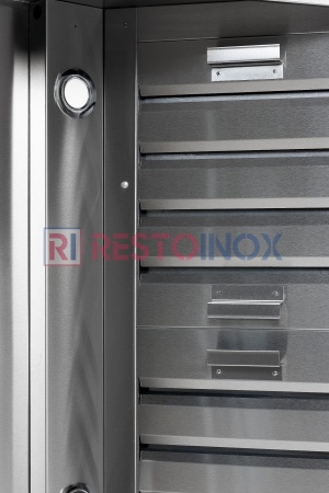 В комплект включены съемные лабиринтные фильтры из нержавеющей стали Aisi 430, подсветка и сливной кран.
